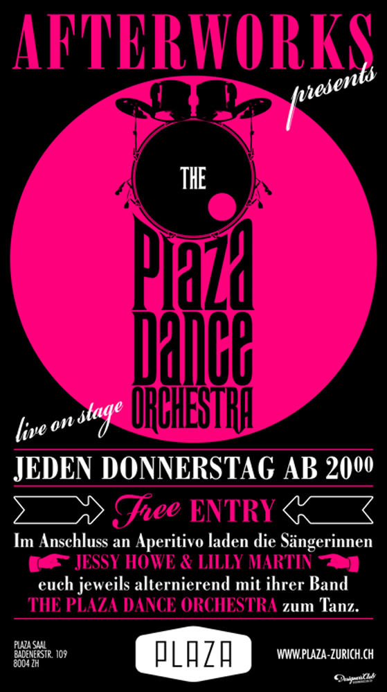 Jessy & Chris of The Raveners play live every second Thursday at “The Plaza” in Zurich. Come and watch them live on stage with the “Sensational Plaza Dance Orchestra feat. Jessy Howe”.